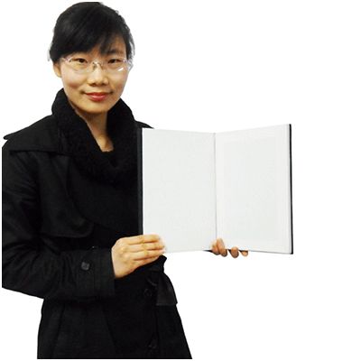 The magician presents a hard cover book, opens the cover and shows the title page or even a blank page and quickly draws an image. The book is closed and when opened again, an item that could not possibly fit in the book, instantly appears!