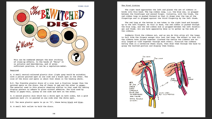 The 348 pages of this book contains 97 effects for Close-up - Stage - Mentalism - Children, etc. Taken from written instructions and books, to watched performances and word of mouth instruction. Here are the cherished ideas of Annemann, Stanley Collins, Paul Curry, Cy Endfield, Robert Harbin, R.W. Hull, Stewart James, Jordan, Milton Kort, Ed Marlo, Clayton Rawson, Harlan Tarbell, Edward Victor and many more.