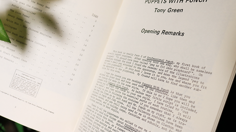 Puppets with Punch by Tony Green is a very hard-to-find book. There are very limited quantities of this book available. Some of the topics in this book include: The Honey Bee, Witchy Whoops, Lollipops, Sammy Seal, The Chinese Magician, plus many other fabulous routines. Also included is a very smart Puppet Case. The plans and illustrations are all there!