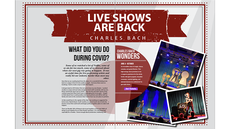 • Featuring Dania Diaz from Spain and our other feature is Charles Bach with his own theatre show.