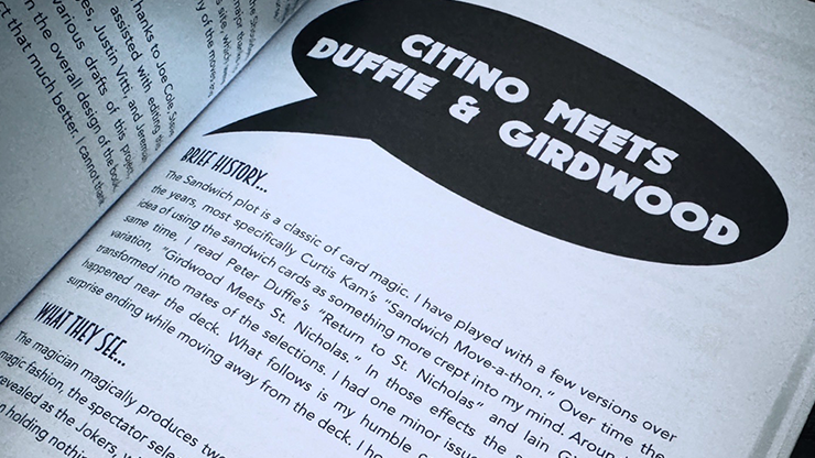 "Bill Citino brings his signature creativity with coins to the world of playing cards in his new book, 'You Do Cards?!'. This collection is a true variety pack of powerful effects, featuring color-changing decks, stick figures, floating keys, card-at-number routines, and much more. I highly recommend this book to all card magic enthusiasts-you're sure to find gems that will earn a place in your working repertoire."