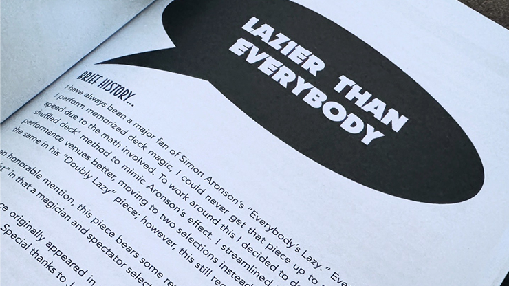 Lazier Than Everybody: A shuffled-deck version of Simon Aronson's "Everybody's Lazy" that streamlines the effect and makes it suitable for repeat performances.