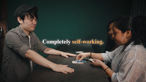 Two matching cards are inserted by the spectator into a deck with all different backs. Incredibly, the cards next to them match-both on the backs and the faces.