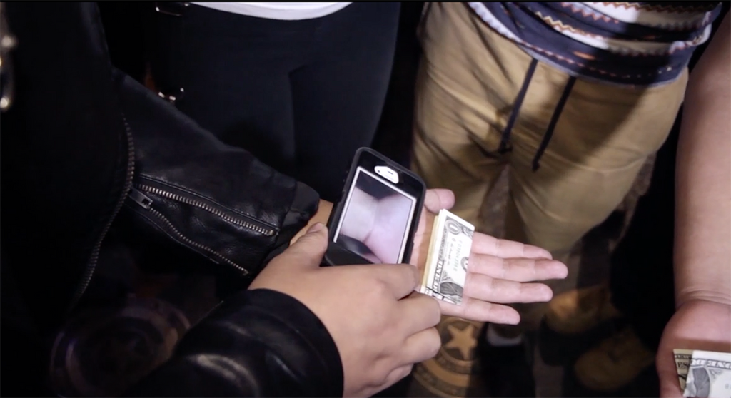 Imagine borrowing a phone and recording a video of a bill with a unique serial number. All details are replicated digitally inside of a borrowed device. Now imagine for a split second, you force the door of the digital world to open, and you pull the bill into your own hand.