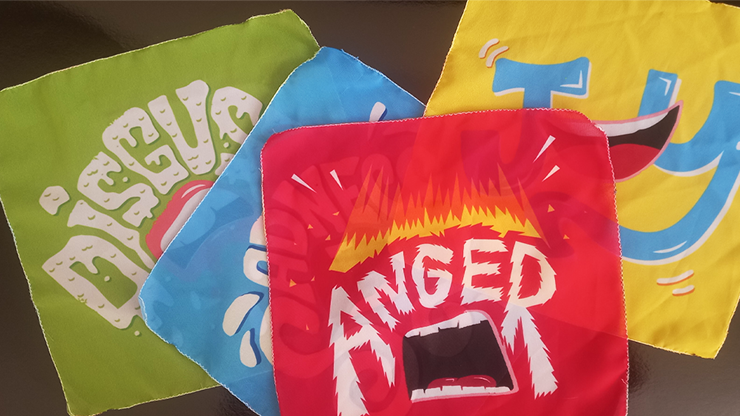 With four monochromatic scarves, each representing an emotion (disgust, anger, sadness and joy), you invite your audience on an emotional journey. Using a change bag (not included), the scarves absorb the audience's energy and... transform into vibrant colors that represent each emotion!