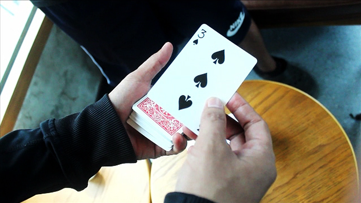 The spectator selects a card and it's lost in the pack. The magician drops the deck and their card visually appears on top!