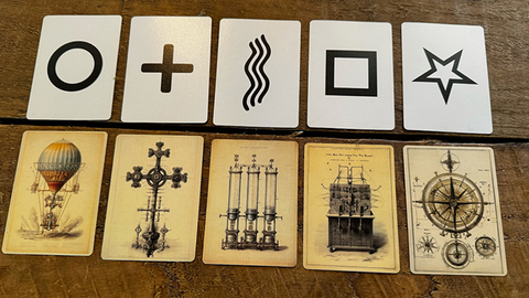 Reminiscent of the later ESP cards from J.B. Rhine these cards can be used in the same way. The cards are marked, and ten cards are included in total, giving you two sets of five.