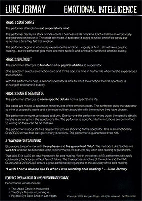 EI provides the performer with three phases and five guaranteed "hits". The methods Luke teaches are surefire and can be depended upon in performance. EI does not rely upon cold reading or guesswork.