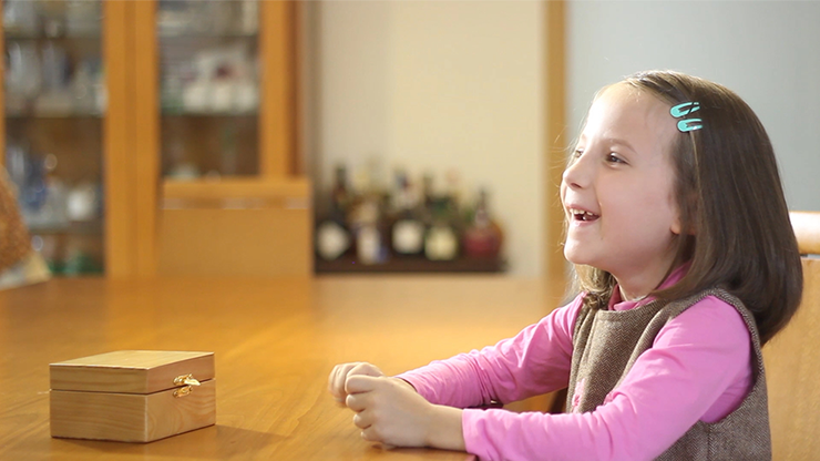 The spectator then mixes the cards and is asked to deal them, one by one, into the box. SUDDENLY the lid of the box SLAMS SHUT, as if telling the spectator to stop dealing. The magician asks the spectator to turn over the card they are holding in their hand... it is the signed card!