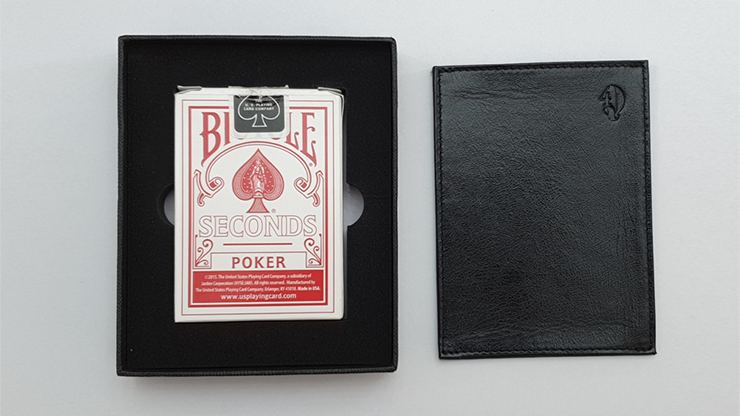 The wallet is made from high quality soft leather, comes in a box with a deck of cards and an explanation video sharing some ideas and routines for close up and stage. The wallet has a special marking so you can always know the orientation of your outcome.