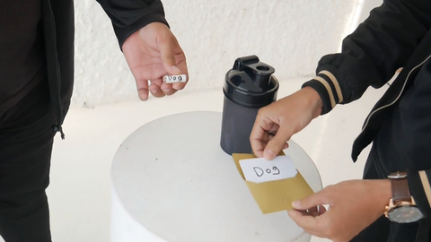 The audience writes something on a piece of paper or sees that it already has random words on it. In full view of everyone, it's placed into a shaker. The lid is sealed, and the shaker is given a good shake. Then, as if guided by fate, one billet emerges from the shaker. The magician reveals their prediction... and it's an exact match.
